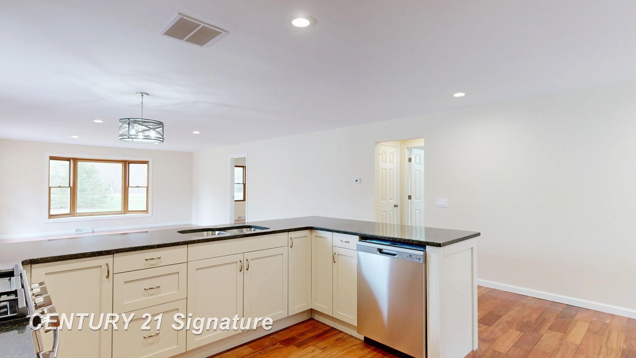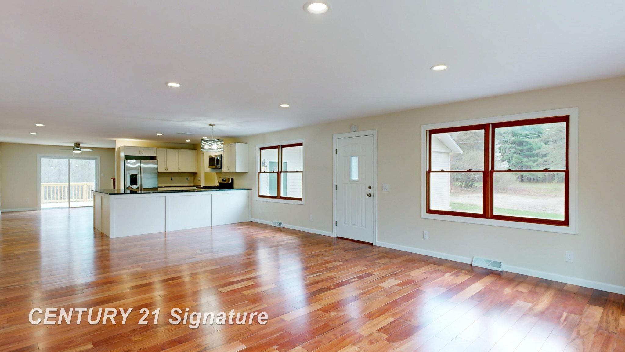Attention to detail was the driving force behind this beautifully remodeled 3-bedroom, 2-bath ranch set back on over an acre of land. Once you walk into the large entryway (22x8) you will then see This open-concept home features brand-new hardwood floors throughout and a cozy fireplace, perfect for relaxing or entertaining. The completely updated kitchen includes all new stainless steel appliances along with granite countertops and flows seamlessly into the open living areas. Stunning new bathrooms with beautiful ceramic tile showers & floors! Enjoy the convenience of main-level laundry and an attached oversized 2.5-car garage. Exterior highlights include low-maintenance vinyl siding and a brand-new deck overlooking the beautiful wooded view, perfect for entertaining or enjoying the wildlife—ideal for outdoor living. Major updates include roof, windows, furnace, A/C, hot water heater, Morton System Saver water softener as well as a complete new septic system! Truly move-in ready with modern finishes throughout. Kitchen tile backsplash will be installed prior to closing. Taxes are non-homestead and will reduce when homesteaded